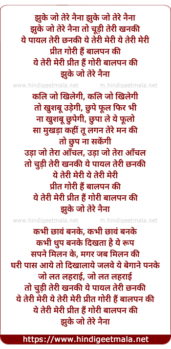 Lyrics of Jhuke Jo Tere Naina Jhuke Jo Tere Naina - झुके जो तेरे नैना झुके जो तेरे नैना