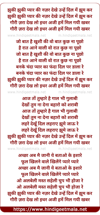 Lyrics of Jhuki Jhuki Pyar Ki Nazar Dekhe Unhe - झुकी झुकी प्यार की नज़र देखे उन्हें
