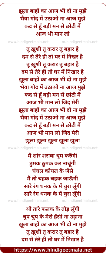Lyrics of Jhulaa Baanho Ka Aaj Bhi Do Na Mujhe (2) - झूला बाहों का आज भी दो ना मुझे
