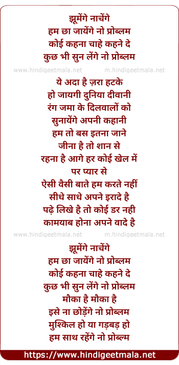 Lyrics of Jhumenge Nachenge Hum Chha Jayenge No Problem - झूमेंगे नाचेंगे हम छा जायेंगे नो प्रोब्लम