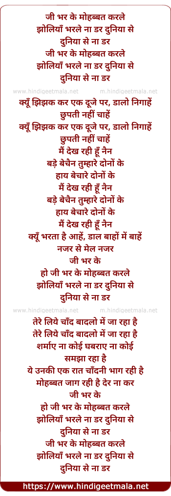 Lyrics of Ji Bhar Ke Mohabbat Karle - जी भर के मोहब्बत करले