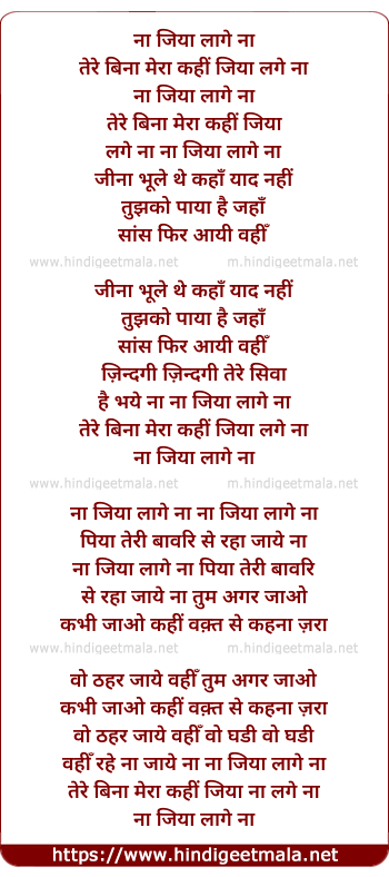 Poetic Translation - Lyrics of Jia Lage Na - जिया लागे ना