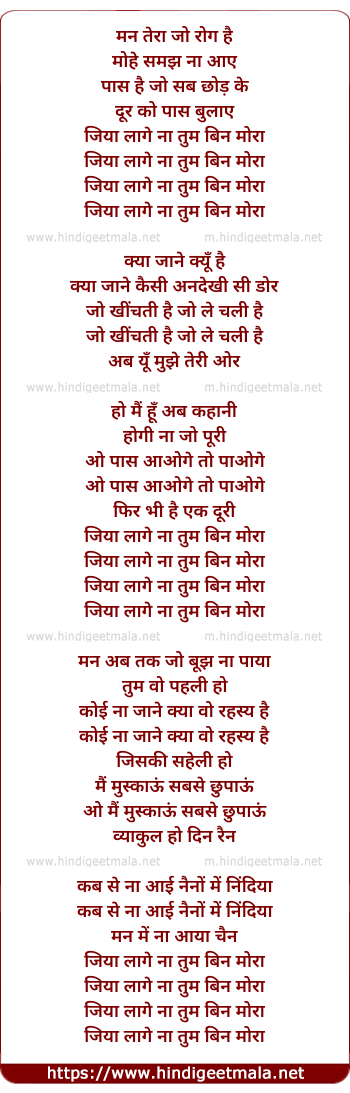 Lyrics of Jia Lage Naa - जिया लागे ना