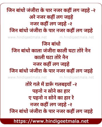 Lyrics of Jin Baandho Janjiraa Ke Paar Najar Kahin Lag Jaihe - जिन बांधो जंजीरा के पार नजर कहीं लग जइहे -२