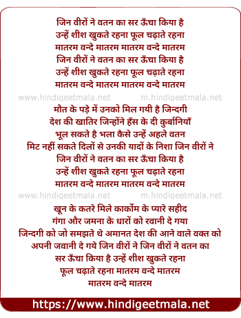 Lyrics of Jin Veero Ne Vatan Ka Sar - जिन वीरों ने वतन का सर