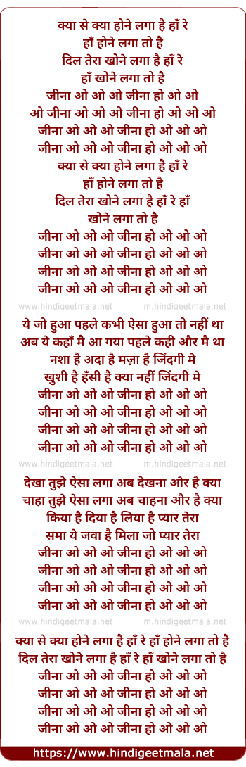 Lyrics of Jina Ho O O O Tere Liye - जीना हो ओ ओ ओ तेरे लिए