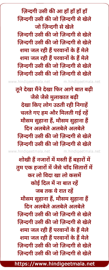 Lyrics of Jindagee Usi Kee Jo Jindagee Se Khele - ज़िन्दगी उसी की जो ज़िन्दगी से खेले