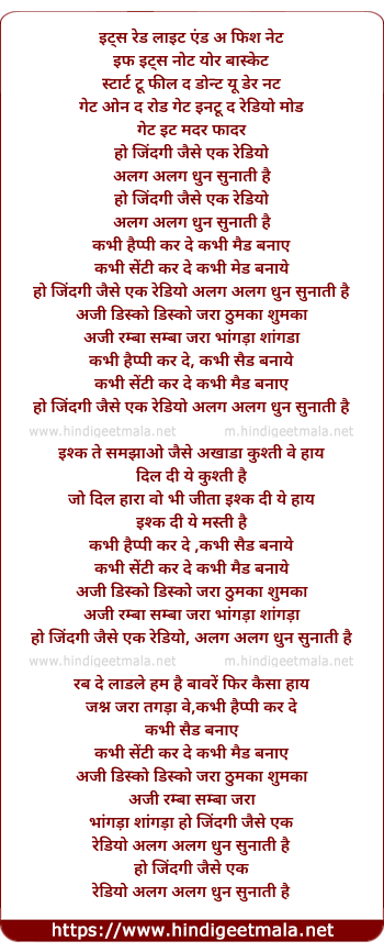 Lyrics of Jindagi Jaise Ek Radio - जिंदगी जैसे एक रेडियो
