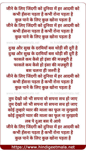 Lyrics of Jine Ke Liye Jindagi Ko Female - जीने के लिए जिंदगी को
