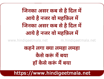 Lyrics of Jinkaa Asar Kab Se Hai Dil Me - जिनका असर कब से है दिल में