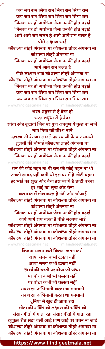 Lyrics of Jinka Ghar Ho Ayodhaya Jaisa - जिनका घर हो अयोध्या जैसा