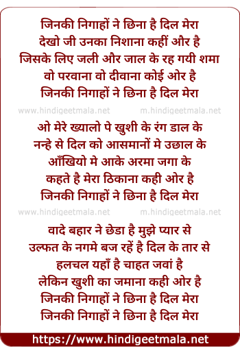 Lyrics of Jinki Nigaho Ne Cheena Hai Dil Mera - जिनकी निगाहों ने छिना है दिल मेरा