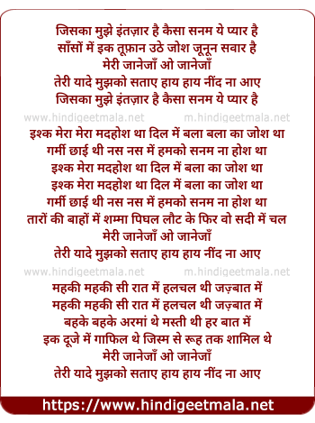 Lyrics of Jiska Mujhe Intejar Hain - जिसका मुझे इंतज़ार है