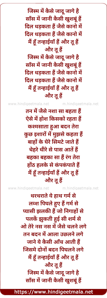 Lyrics of Jism Me Kaise Jaadu Jaage Hai - जिस्म में कैसे जादू जागे है
