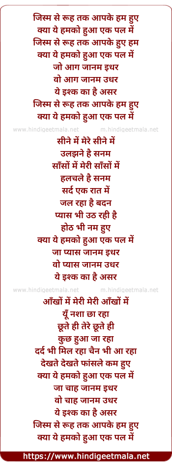 Lyrics of Jism Se Ruh Tak Aapke Hum Hue - जिस्म से रूह तक आपके हम हुए