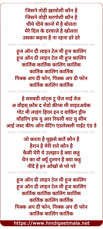Lyrics of Jisne Todi Khamoshi Kaun Hai - जिसने तोड़ी ख़ामोशी कौन है