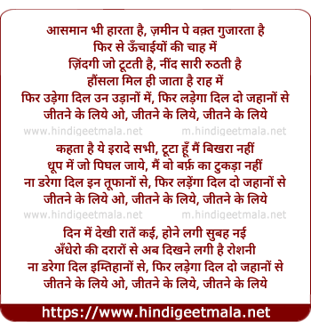 Lyrics of Jitne Ke Liye - जितने के लिए