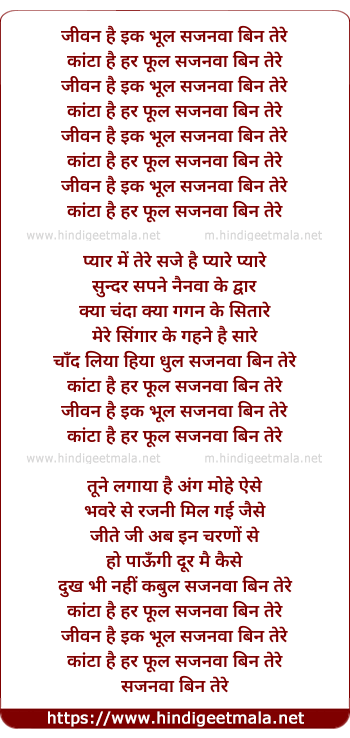 Lyrics of Jivan Hai Ek Bhool Sajanwa Bin Tere - जीवन है एक भूल सजनवा बिन तेरे