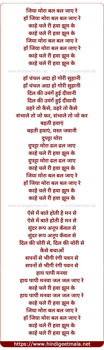Lyrics of Jiya Mora Bal Bal Jaye Re - जिया मोरा बल बल जाए रे