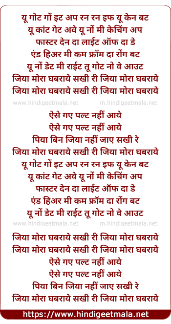 Lyrics of Jiya Mora Ghabraaye (The Chase) - जिया मोरा घबराये