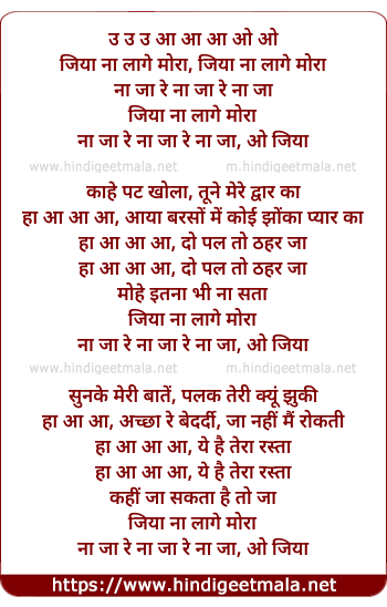 Lyrics of Jiyaa Naa Laage Moraa - जिया ना लागे मोरा