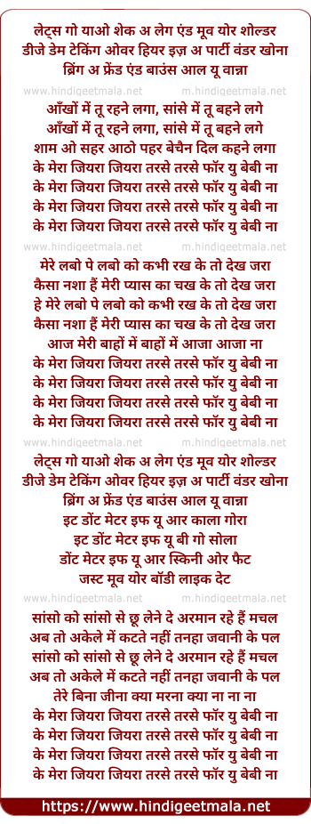 ke mera jiyara jiyara tarse tarse for you baby na