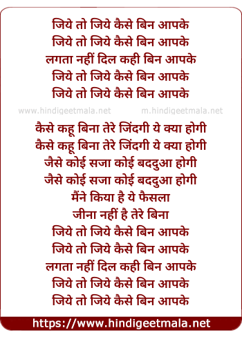Lyrics of Jiye To Jiye Kaise Bin Aapke - जिये तो जिये कैसे हाय बिन आपके
