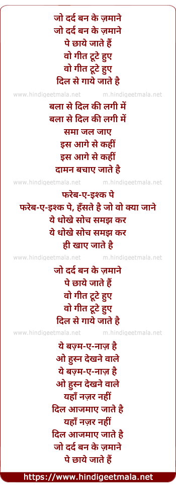 Lyrics of Jo Dard Banake Zamana Pe - जो दर्द बन के ज़माने