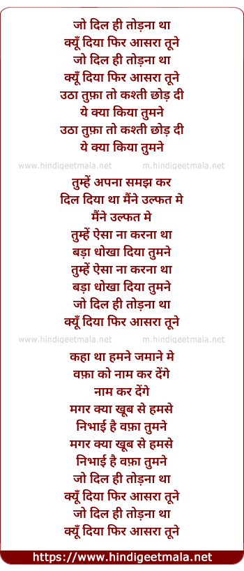 Lyrics of Jo Dil Hi Todna Tha - जो दिल ही तोड़ना था