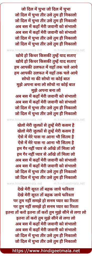 Lyrics of Jo Dil Me Chubha - जो दिल में चुभा