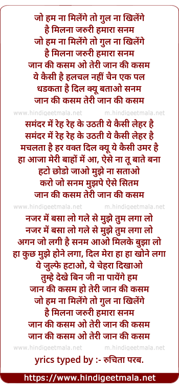 Lyrics of Jo Ham Na Milenge To Gul Na Khilenge - जो हम ना मिलेंगे तो गुल ना खिलेंगे