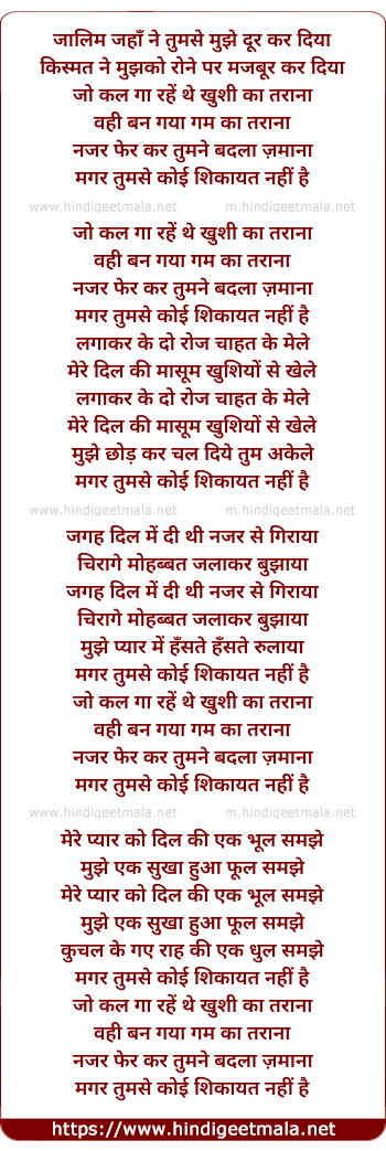 magar tumse koi sikayat nahi hai