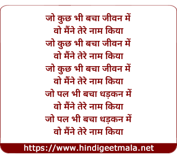 Lyrics of Jo Kuchh Bhee Bacha Jivan Me - जो कुछ भी बचा जीवन में