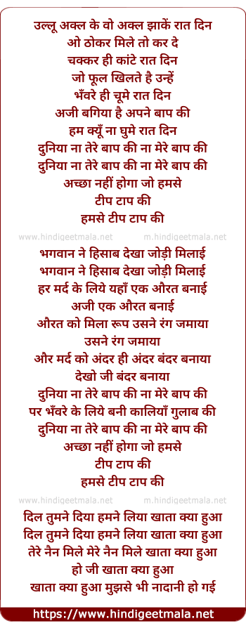 Lyrics of Jo Mard Ullu Shakl Ke - जो मर्द उल्लू शक्ल के