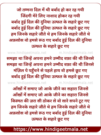 barbad hui dil ki dunia ulfat ke sahare chut gaye