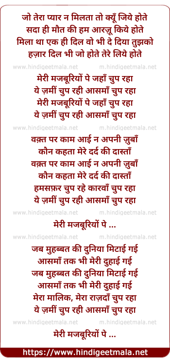 meri majaburiyo pe jahan chup raha