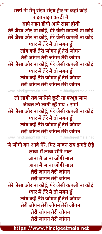 Lyrics of Jogan... Teri Jogan Teri Jogan - सत्तो नी मैनू रांझा रांझा हीर ना कहो कोई