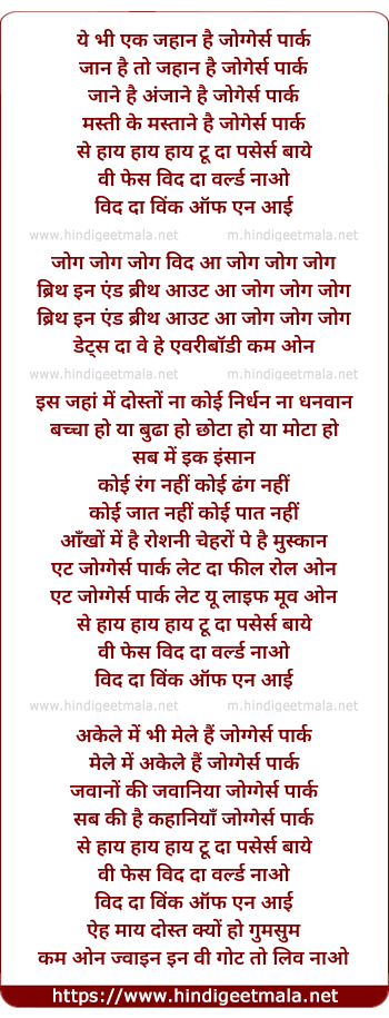 Lyrics of Joggers Park - Part 2 - जोग्गेर्स पार्क