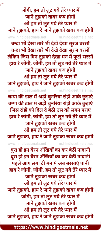 Lyrics of Jogi, Ham To Lut Gaye Tere Pyaar Men - जोगी, हम तो लुट गये तेरे प्यार में