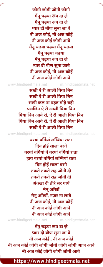 Lyrics of Jogi Jogi - जोगी जोगी जोगी जोगी