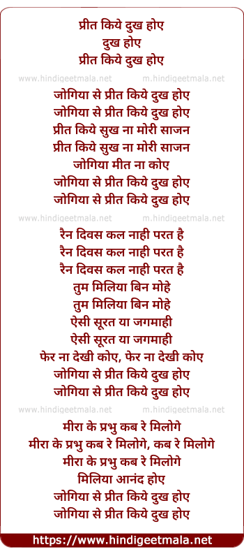 Lyrics of Prit Kiye Dukh Hoye - प्रीत किये दुख होए