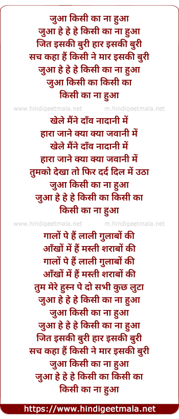 Lyrics of Jua Kisi Ka Na Hua - जुआ किसी का ना हुआ