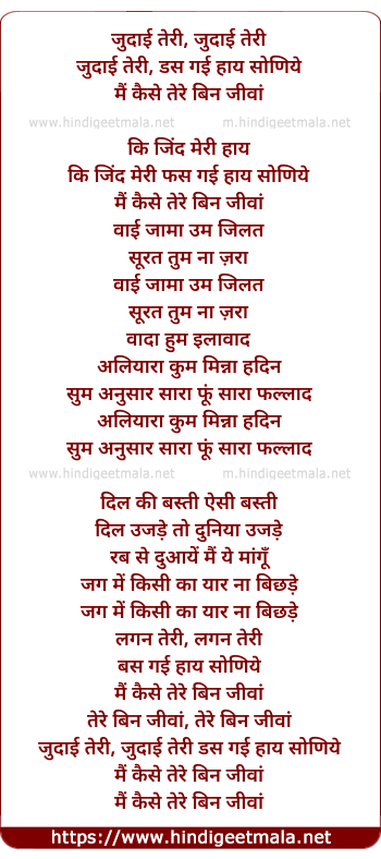 Lyrics of Judaai Teri - जुदाई तेरी