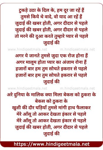 Poetic Translation - Lyrics of Judai Ki Khabar Hoti - जुदाई की खबर होती