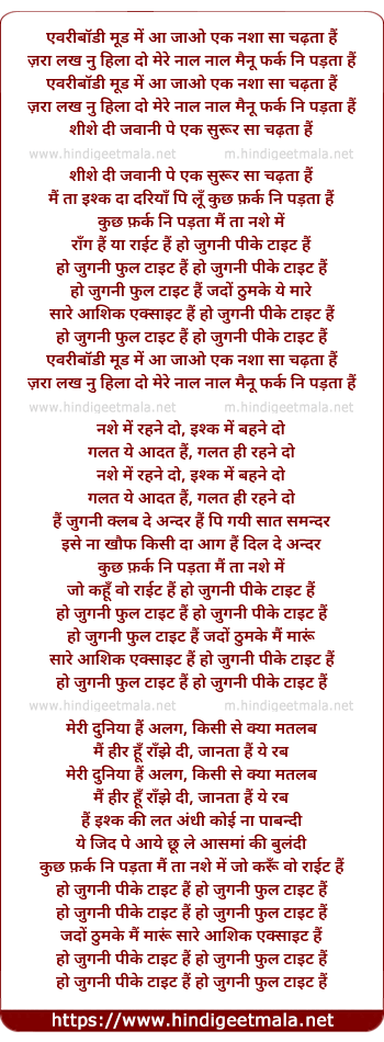 Lyrics of Jugni Peeke Tight Hai - I - एवरीबॉडी मूड में आ जाओ
