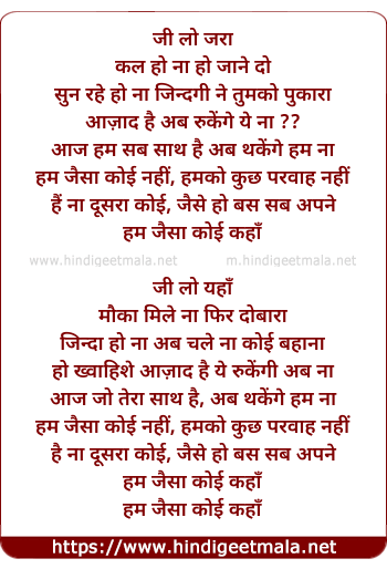 Lyrics of Jump - जी लो जरा