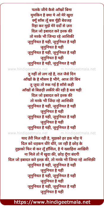 Lyrics of Junooniyat (Title Song) - पलके जीये कैसे आँखों बिना