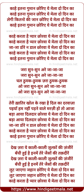 Lyrics of Kaahe Itna Guman Chhoriye - काहे इतना गुमान छोरिए