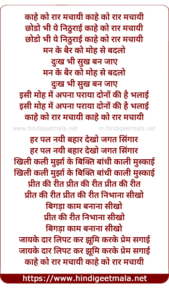 Lyrics of Kaahe Ko Raar Machaayi