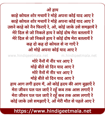 kaahe koyal shor machaye re mohe apna koyi yaad aaye re